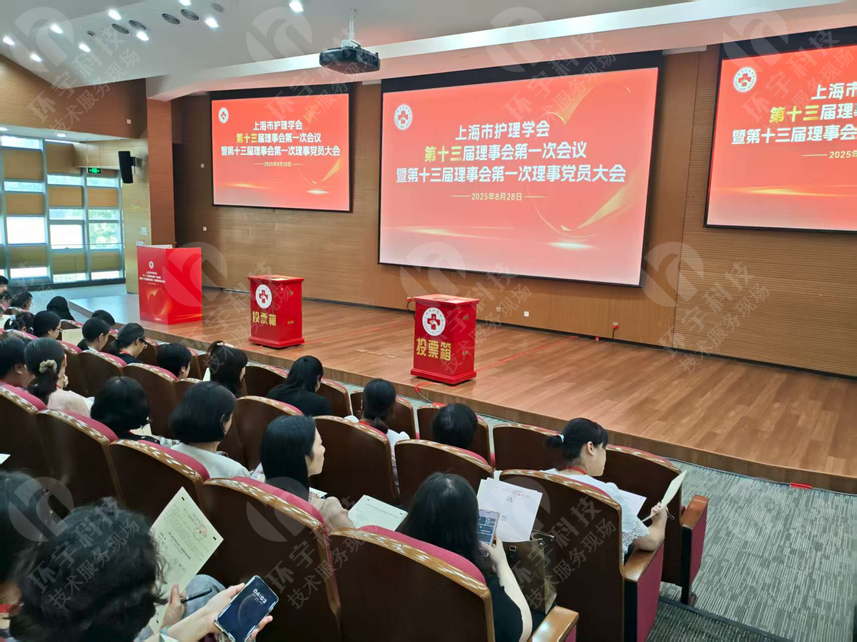 采用了两台环宇智能投票箱。大会现场无记名投票选举产生了